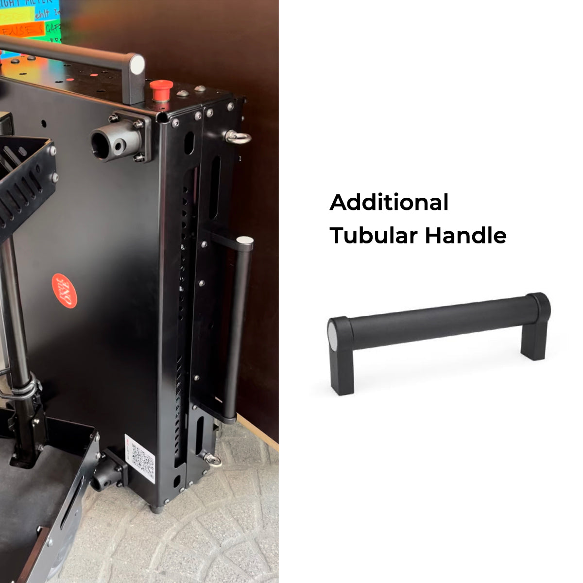SCHLEPP ONE: The additional Tubular Handle (Aluminium Alloy, black) enables horizontal carrying of your SCHLEPP ONE Camera Cart. The handle is attached to the base using 2x M6 x 12 mm screws (included) - SCHLEPP ONE only.