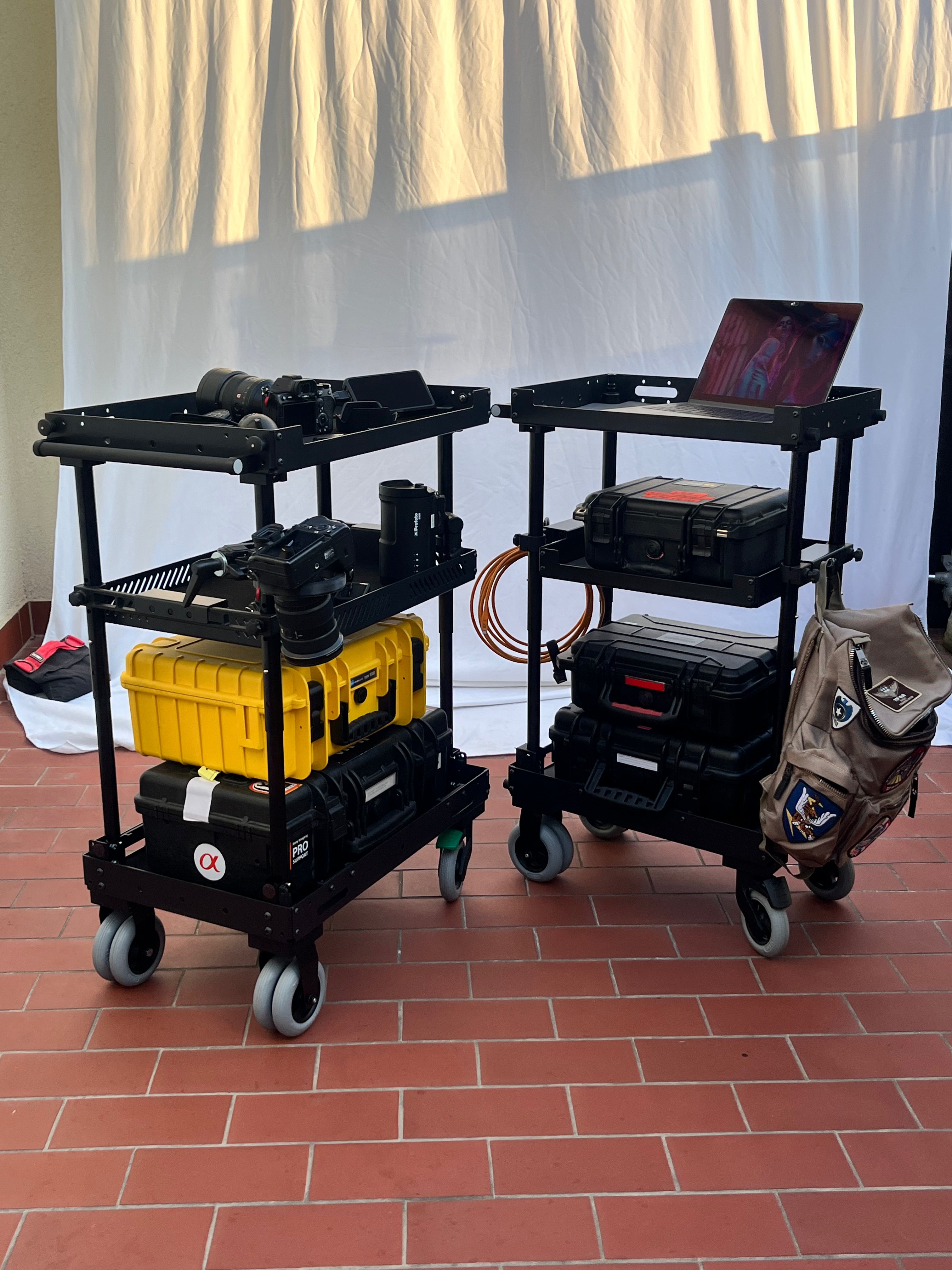 SCHLEPP Twin Casters replace swivel casters with directional locks (black levers) on your SCHLEPP ONE / SCHLEPP ONE-S Camera Cart. They improve handling on bumpy grounds and increase straight-line stability with a loaded cart.Β
