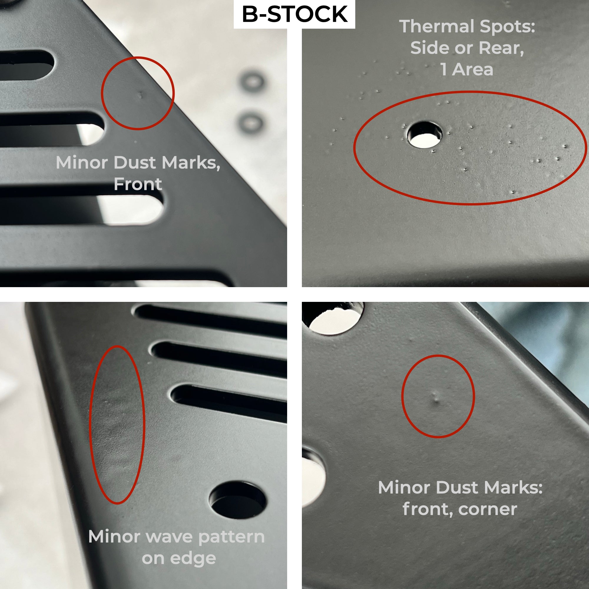 Due to the nature of surface coatings, slight variations and occasional dust inclusions are unavoidable. In some cases, minor marks or scratches may also occur during transport from the coating facility to us. Items that are fully functional but show these small cosmetic imperfections are offered as B-Stock.