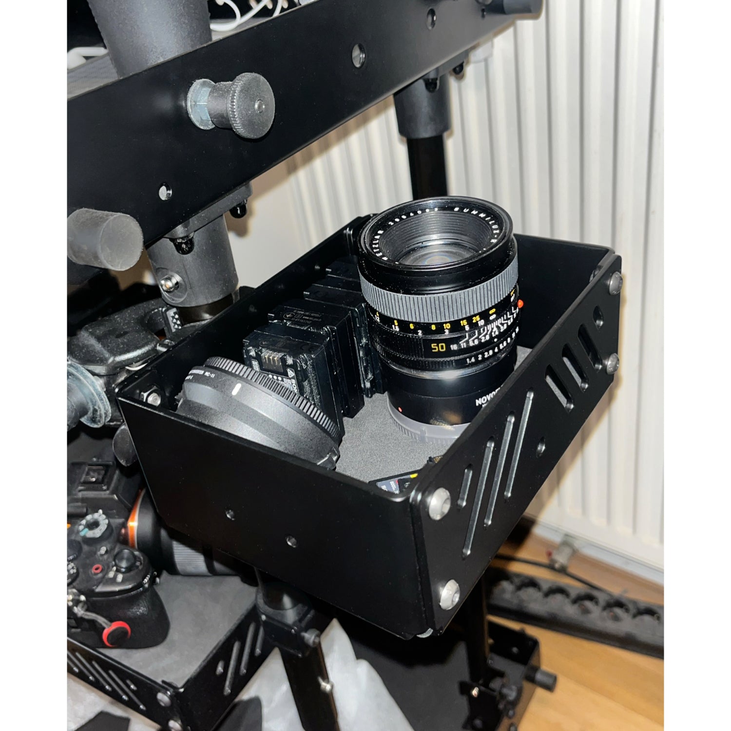 Can be mounted to your cart's tubes - or ANY light stand with a Manfrotto MA035 or similar Super Clamp (not included) - with just 2x M5 screws. Please make sure your Super Clamp has M5 threads.